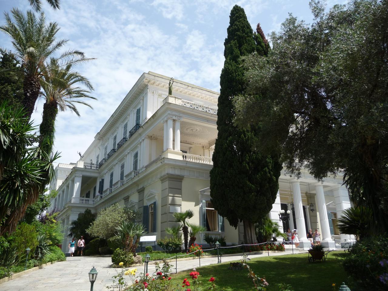 Cette villa néo-grecque fut érigée en 1889-1891 à l'occasion du second séjour à Corfou de l'impératrice Élisabeth d'Autriche (1854-1898), dite "Sissi".
